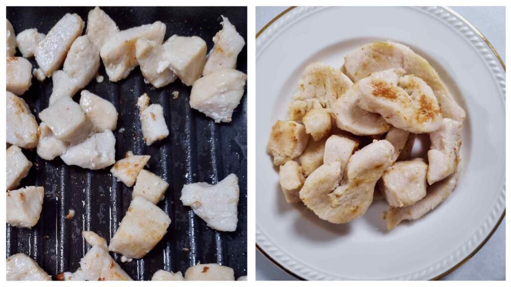 Cook the chicken until the meat turns from pink to white on medium low heat. Make sure that the pot lid is covered. Once the chicken is cooked, grill with more butter on a grill pan. This step will give you the softest and most tender chicken pieces.