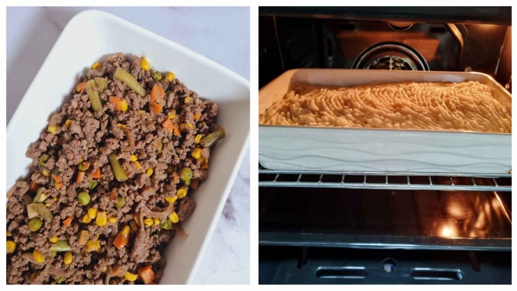 If your oven doesn’t have a fan, increase the temperature to 200ºC / 400ºF and increase the baking time to twenty-five minutes. Make sure to watch your cottage pie without opening the oven every five minutes to ensure that it is cooking accordingly.