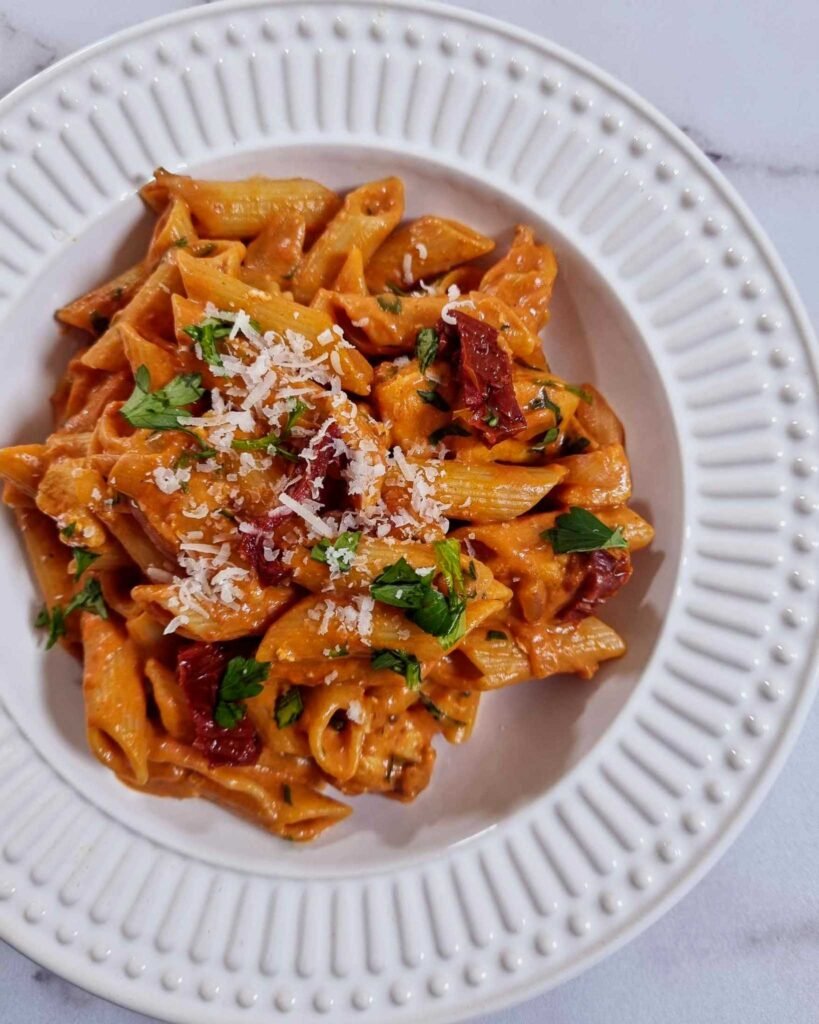 When it comes to Creamy Chicken pasta, this recipe hits the mark. Think penne pasta with creamy flavours, a bit of tomato paste, and sun-dried tomatoes, and you have an incredible dish. In this recipe, we are sharing our top method for cooking tender, moist chicken breast.
