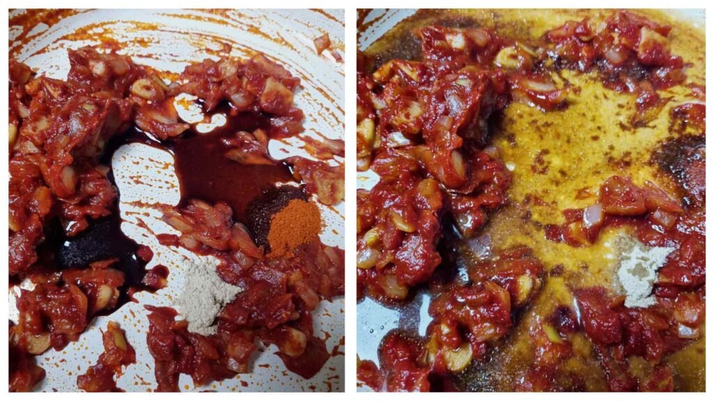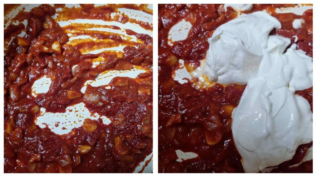 Chicken breast complements this recipe well; you can also use deboned chicken thighs. Garlic cloves and onion add a subtle sweetness to this dish. Tomato paste adds a concentrated tomato flavour.
