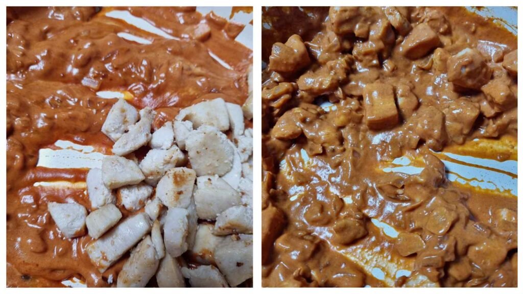 The best option for this recipe is boneless and skinless chicken breast. However, chicken thighs also work. Searing the chicken before adding the sauce will enhance the overall flavour. Adding butter or parmesan cheese increases the creaminess and gives the creamy chicken pasta a velvety finish.