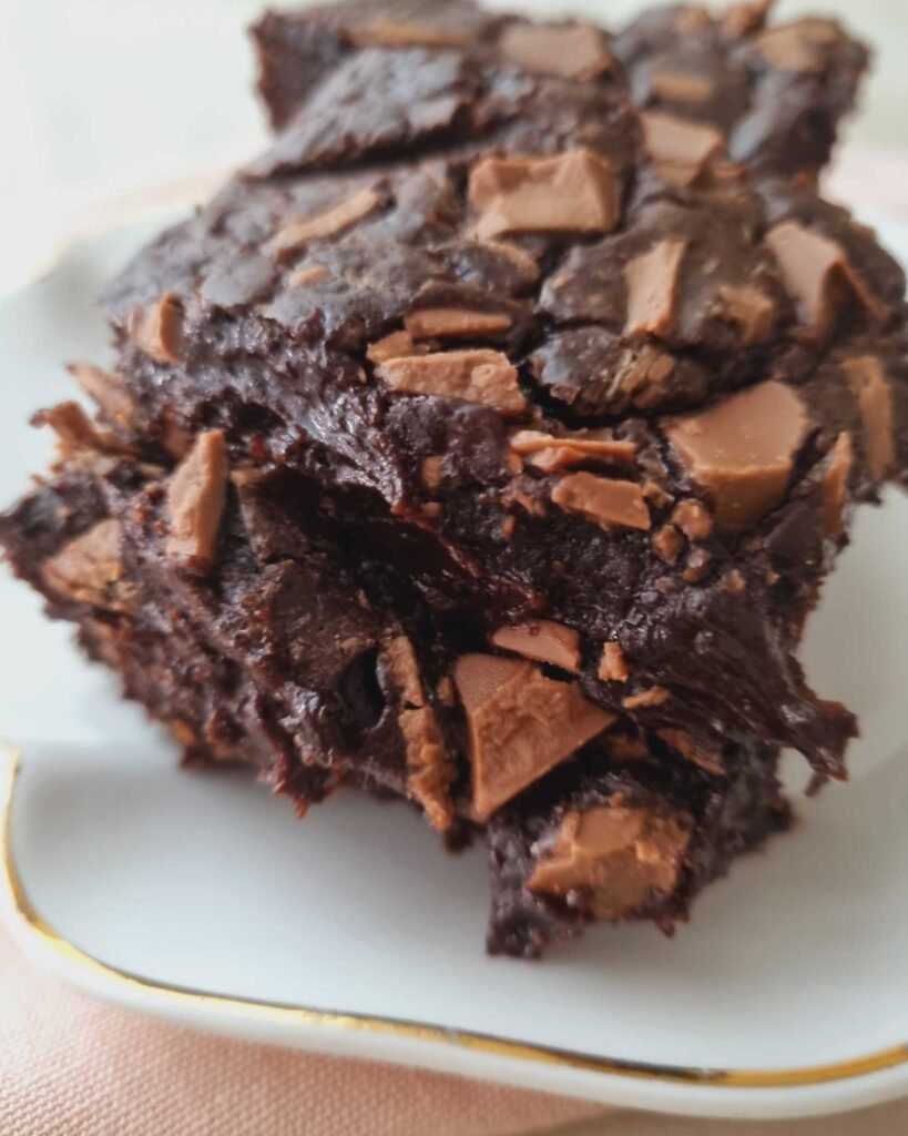 When the brownies are done, let them cool, then leave them in the refrigerator for 3 hours. You can also have it rest in the deep freeze if you prefer a caramel consistency of the brownie.