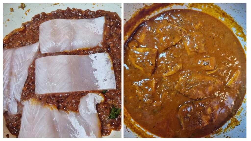 During this time, the fish will absorb the flavours of the spices. Be careful when stirring as the fish is delicate and breaks apart easily. The Goan fish curry is ready to be served and enjoyed immediately.