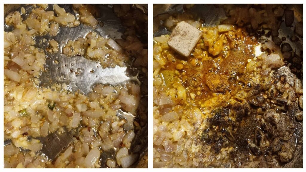 Begin by chopping the onions, garlic, and ginger into small to medium-sized cubes. Add oil to a pot over medium-low heat, then add the chopped onions and sauté for 5 to 7 minutes, until they are lightly golden. Add the garlic and ginger and sauté for three minutes.