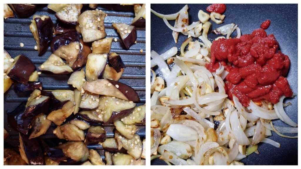 It is much quicker to cook the eggplant in the grill pan. Additionally, the taste is significantly better than that of the oven-baked eggplant. When you bake eggplant in the oven, moisture gets trapped inside the spongy layer, which lacks flavour and doesn’t quite caramelize like it does on a grill pan. We’ve used a combination of spices that bring out the taste of the tomato sauce.