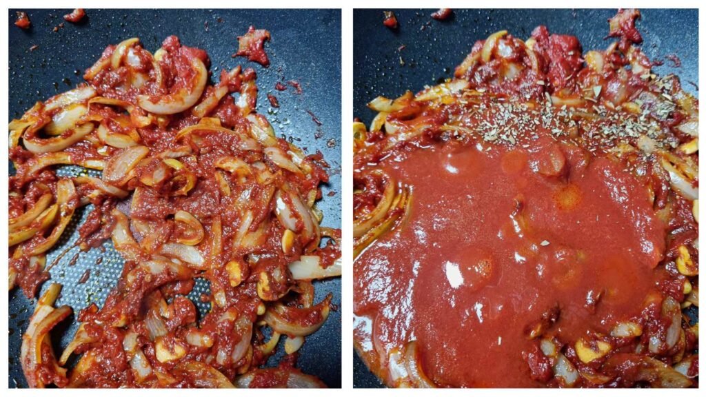 In preparing the sauce, we selected a variety of spices to enhance the flavour of the tomato sauce. Dried basil gives the tomato sauce a Mediterranean flavour, while paprika powder adds a smoky note. Tomato paste deepens the taste of the tomatoes. The Worcestershire sauce adds that special factor to the Pasta alla Norma, which rounds out the flavours.